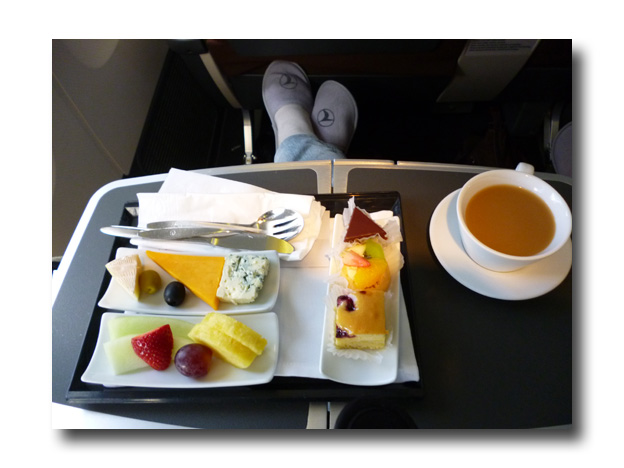 最初の機内食(妻の選んだ方で、こちらは豆腐の何とか)この前にツマミが4品程出た が撮影を忘れた |